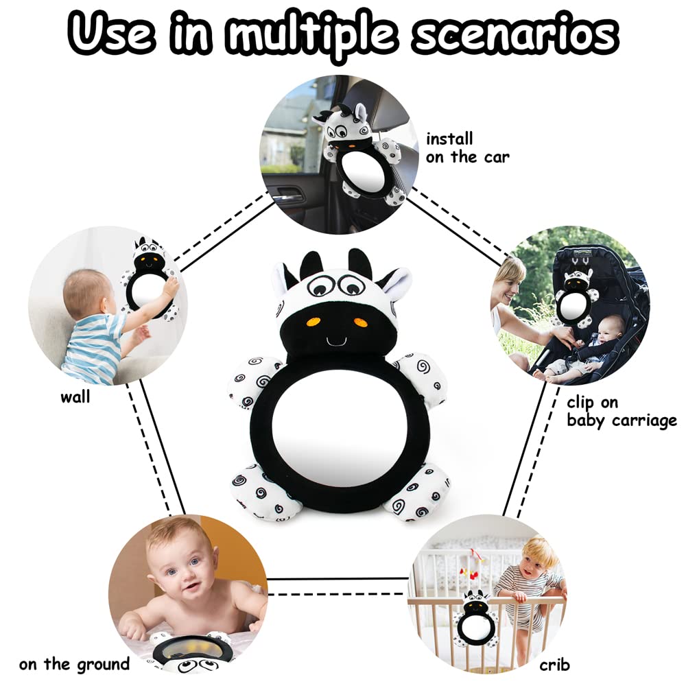 🐄 Material: Soft, baby-safe fabric with non-breakable mirror