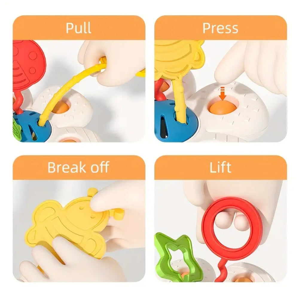 Made from premium, BPA-free silicone and ABS plastic β smooth, soft, and safe for babies to chew and pull. Designed for endless fun and durability! π·